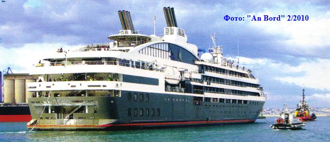 Новый круизный лайнер "Le Boreal" Французской круизной компании "Reederei Compagnie du Ponant" вводится в эксплуатацию в этом месяце. "Le Boreal" стал первым за сравнительно длительный промежуток времени построенным современным круизным судном, принадлежащим к сегменту круизных судов подобной небольшой величины. Компания "Reederei Compagnie du Ponant" была основана в 1988 году двумя военно-морскими офицерами Jean-Emmanuel Sauvee и Philippe Videau с ввода в эксплуатацию круизной парусной яхты "Le Ponant", расчитанной на 32 пассажира. В 1996 году была введена в эксплуатацию уже моторная 45-каютная яхта "Le Levant", а в 2003 был куплен круизный 113-каютный лайнер "Song of Flower" величиной 8282 BRZ, который стал лайнером для экспедиционных круизов с названием "Le Diamant". В середине будущего года компания планирует ввести в эксплуатацию однотипное с "Le Boreal" судно - "L´Austral" величиной 10700 BRZ , которое уже строится на той же самой судоверфи, где был построен "Le Boreal" - на судоверфи "Fincanteri" в Ancona (Италия). Поскольку стало известно, что судоверфь сможет закончить постройку "L´Austral" уже в октябре этого года, то, по всей вероятности, к концу года флот компании будет состоять из пяти круизных лайнеров. "Le Boreal" вызывает большой интерес у специалистов круизного бизнеса и судостроения. "Reederei Compagnie du Ponant" связывает с ним и строящимся однотипным судном "L´Austral" хорошие перспективные надежды.