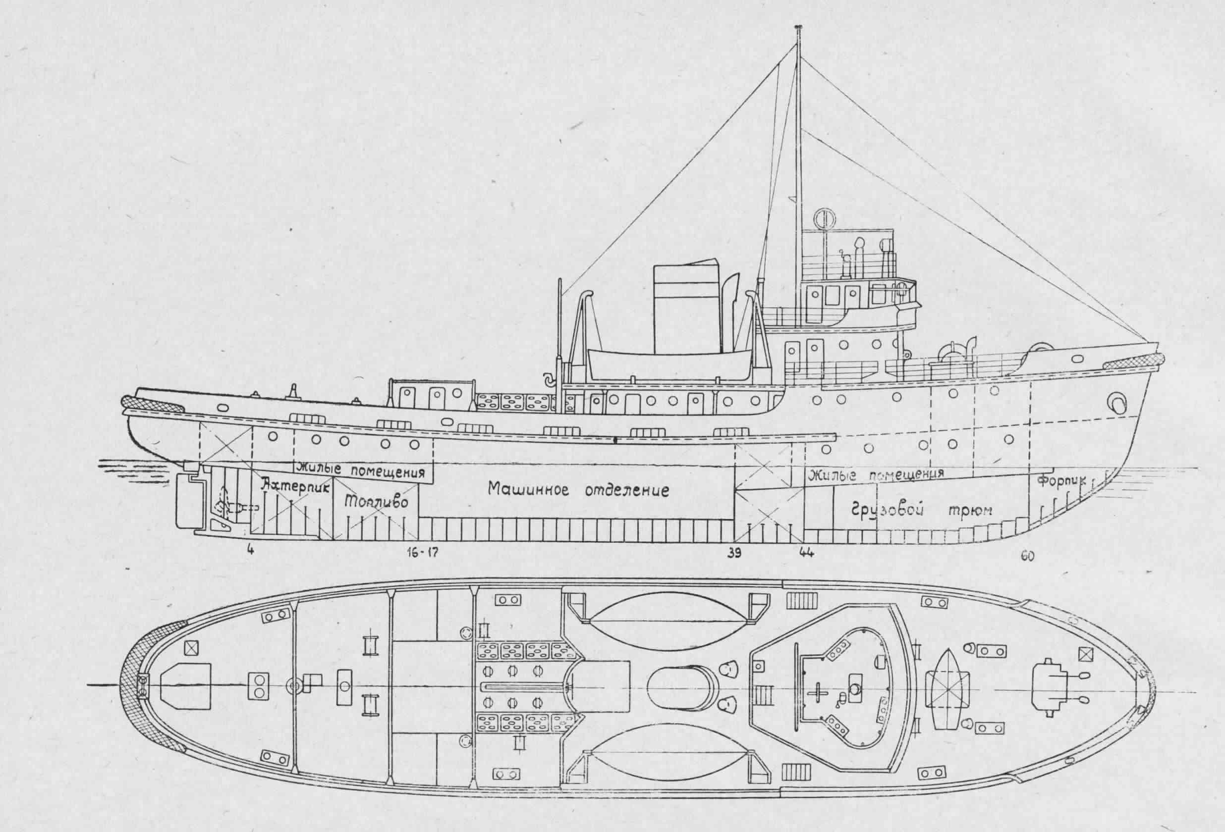 Главный двигатель – два дизеля 6ДР30/50, по 600э.л.с. при 300 об/мин. Ленинградского завода Русский дизель.
