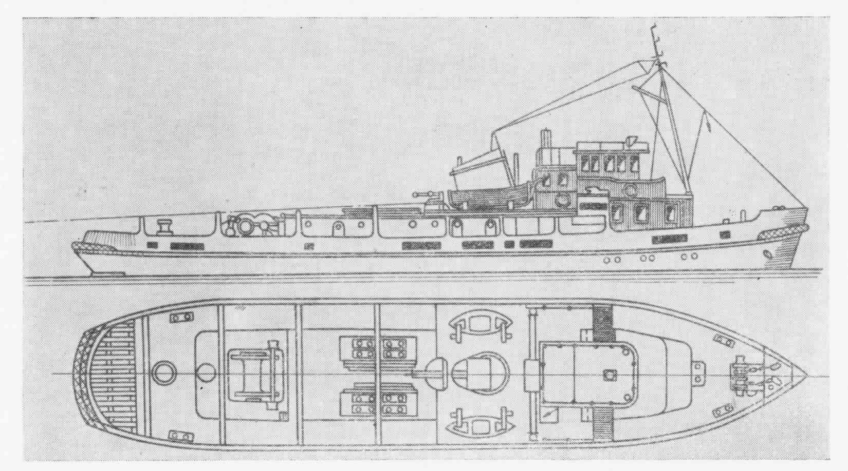 Главный двигатель – два дизеля – Купер-Бессимер, , США, 1943г. по 950 элс, 300 об/мин.