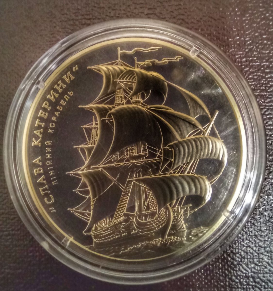 Монета Нацioнального банка Украi'ни лiнiйний корабель "Слава Катерини" номiнал 5 гр.